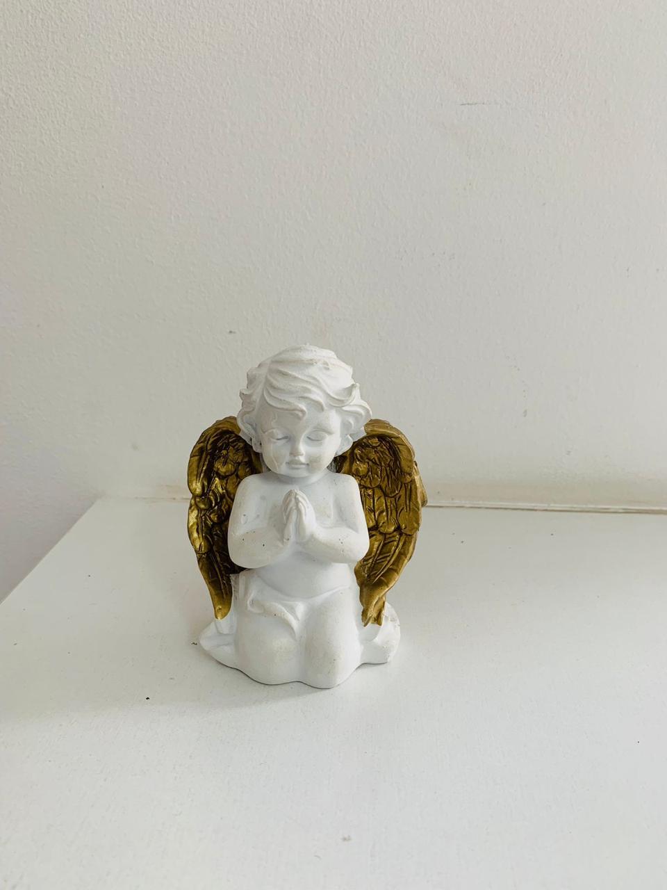 Início Peças Decorativas Anjo Resina com as asas douradas