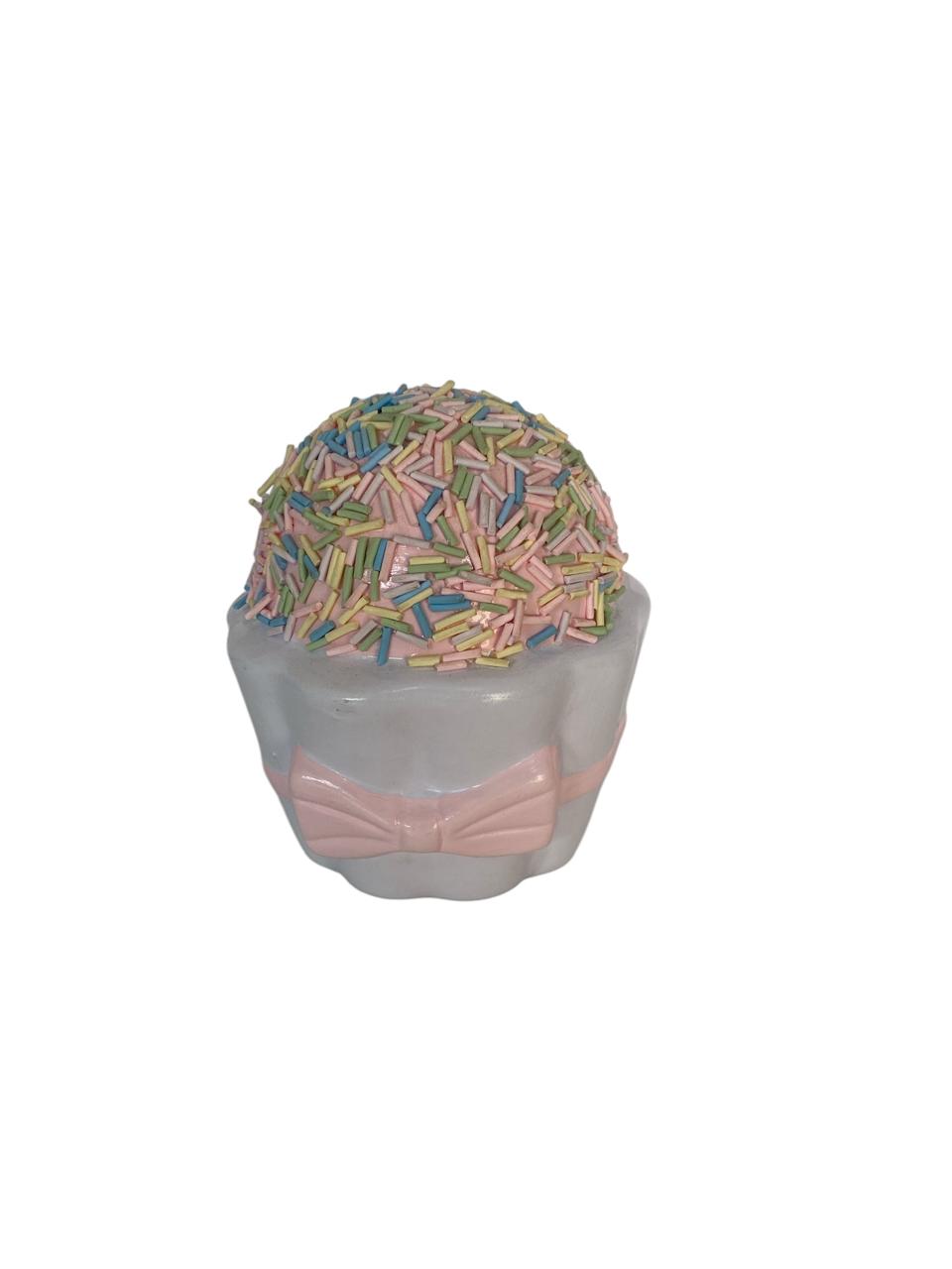 Brigadeiro cerâmica lilas com laço rosa candy