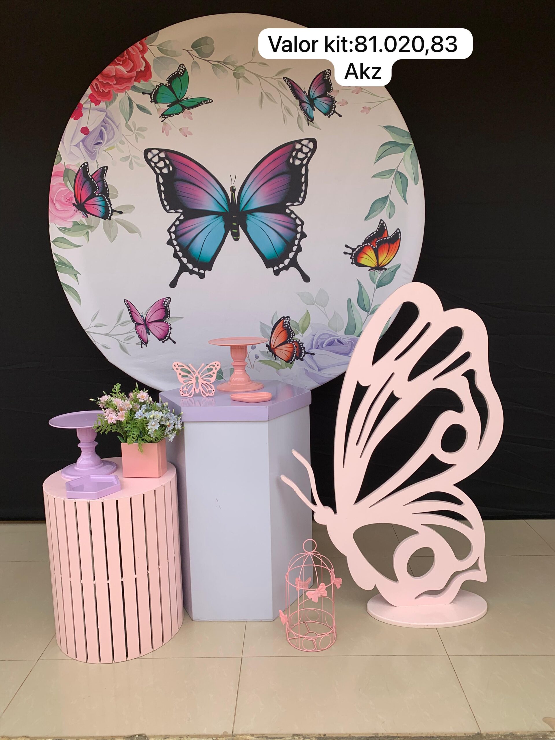 Kit Bronze Borboleta Com Gaiola Rosa 2