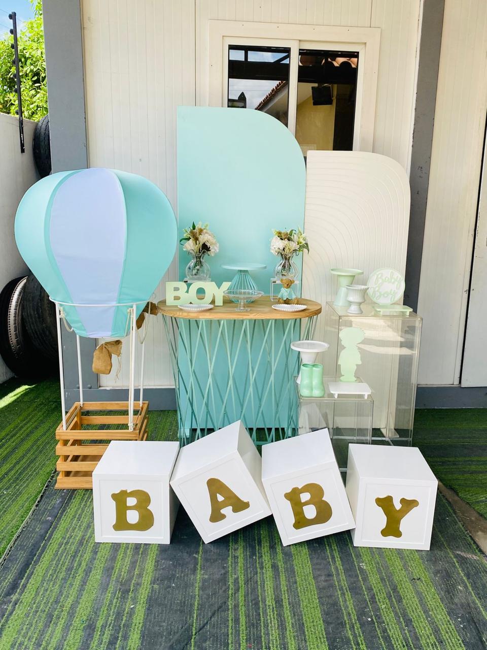 Kit chá de bebe verde com cubo baby