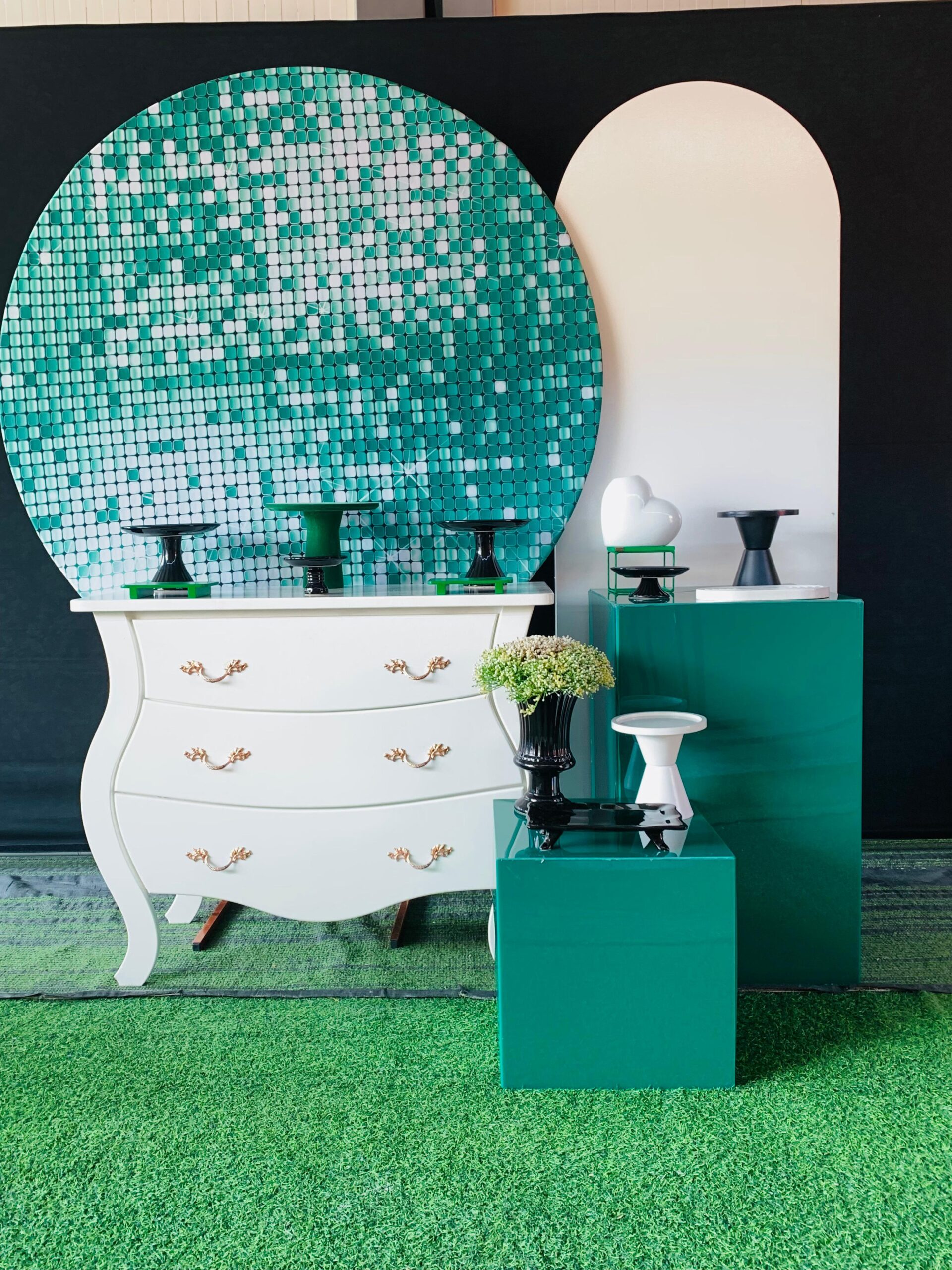 Kit Prata Com Painel Lantejoulas Redondo Verde