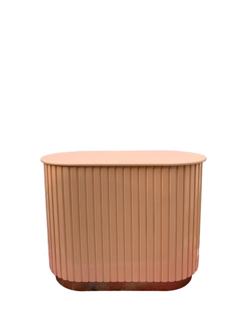Mesa oval ripada com base dourada Salmão